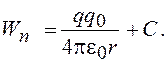Значение постоянной С определим, полагая, что при бесконечно большом расстоянии энергия взаимодействия зарядов равна нулю. Это возможно при