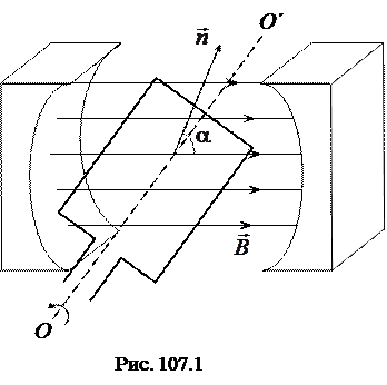 Из формулы (107.2) следует, что поток Ф через рамку с течением времени будет меняться. На основании закона Фарадея в рамке при этом возникает ЭДС индукции: