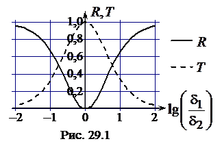 В формулах (29.4), (29.5) величины с индексом "1" относятся к среде, из которой идет звук, а индексом "2" обозначены характеристики среды, в которую проходит звук. Если удельные акустические сопротивления обеих сред одинаковы ( Если же удельное активное сопротивление одной из сред много больше сопротивления другой среды (