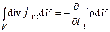 Если через объем протекают токи, то величина заряда изменяется во времени, причем скорость изменения заряда . Поток вектора плотности тока через поверхность равен величине заряда, вытекающего из объема в единицу времени. Поэтому можно записать