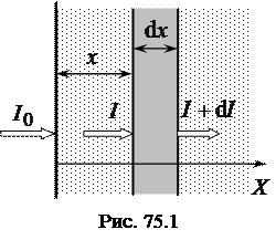Знак "–" означает, что интенсивность уменьшается в результате поглощения. Разделив обе части уравнения (75.1) на интенсивность