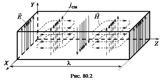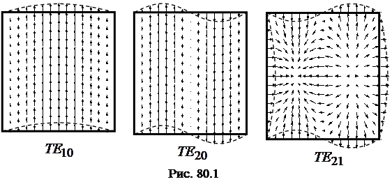 Линии напряженности электрического и магнитного полей в волне Каждой моде соответствует длина волны