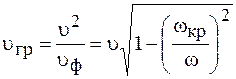 из которого видно, что длина волны в волноводе больше, чем в свободном пространстве. Фазовая скорость волны в волноводе также отличается от скорости в свободном пространстве и зависит от частоты, т. е. волновод обладает дисперсией