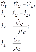 Принцип действия ИЕП основан на явлении резонанса напряжений в цепи L-C. Пусть U1л = const, f = const, хL = хС = хр.э, активные сопротивления реакторов и конденсаторов пренебрежимо малы. Так как схема симметрична, рассмотрение проведем для одной фазы; токи и напряжения в других фазах будут иметь соответственно одинаковые амплитуды, но будут сдвинуты по фазе на Для схемы на рис. 3.26,а справедливы следующие уравнения, записанные в комплексных величинах: