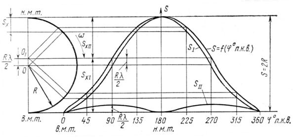 Из формулы видно, что перемещение поршня можно представить в виде суммы двух перемещений. При этом Физическая сущность поправки Ф.Брикса в том, что она учитывает, насколько больше перемещение поршня