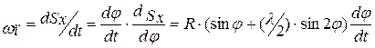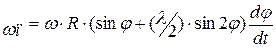 или окончательно: Анализ формул показывает, что скорость и ускорение поршня можно представить в виде двух составляющих. При этом первая выражает скорость и ускорение поршня при бесконечно длинном шатуне, а вторая – поправку скорости и ускорения поршня на конечную длину шатуна. Графически эти составляющие представлены на рисунках 2.3 и 2.4.