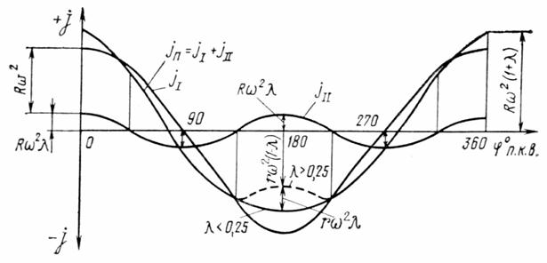 После подстановки в уравнение нахождения сил инерции от возвратно–поступательных масс значения ускорения jп, которое определяли ранее в кинематическом расчете по формуле