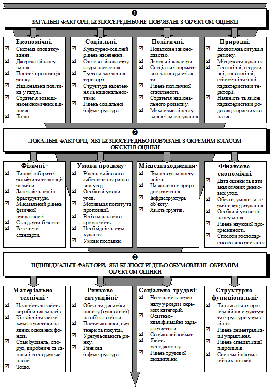 Рис. 2. Ієрархія чинників, що формують вартість об’єкту оцінки