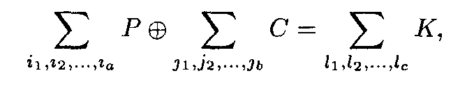 Следующее уравнение выполняется с вероятностью 0,19 для случайно выбранного X и зафиксированного К (с учетом перестановки в Е - и Р -блоках):