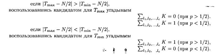 Шаг 1. Пусть Т задает число открытых текстов, таких, что левая часть уравнения (3.2 равна нулю для каждого кандидата Кn ( i ) (i = 1,2,...). Шаг 2. Обозначим через Т mах и Т min максимальное и минимальное значения среди Ti. Тогда