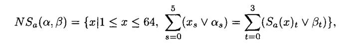 (3.3) где Sa (x) t — t-й бит выходного значения Sa при заданном на входе значении х. Если NSa (a, b) не равно 32, можно сделать вывод о корреляционной зависимости входных и выходных бит Sa. Например, уравнение 3.4 показывает, что четвертый бит входных значений S5 равен сумме всех бит выходных значений с вероятностью 12/64 = 0,19: