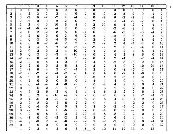 В усеченной табл. 3.19 представлены значения NS5 (a, b) - 32 для всевозможных значений a (номер строки) и b (номер столбца). Исследование полной таблицы показывает, что уравнение (3.4) является наилучшим линейным приближением во всех S -блоках (то есть величина | NS5 (a, b)| принимает максимальное значение). Следовательно, уравнение (3.4) является наилучшим линейным приближением для F -функции. Из определения S -блоков вытекает, что