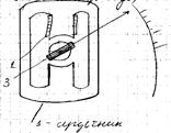 1 – сердечник; 2 – неподвижная катушка; 3 – подвижная катушка. Обозначается – Наличие сердечника в таких приборах позволяет увеличить моменты вращения, поэтому они используются в самопишущих устройствах. В них вращающий момент возникает в результате взаимодействия системы двух электрических заряженных проводников, один из которых подвижен.