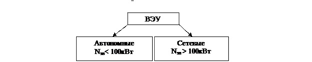 Первые серийные установки были в развитых странах США, Дания и имели мощность 30 – 100 кВт·ч и стоимость достигала 30 центов за кВт·ч, в 80-е годы мощность одной установки была 500 – 750 кВт·ч и стоимость была 5 центов за кВт·ч. В Германии фирмой Enercon построена ветровая электроустановка мощностью 1,5 МВт, диаметр лопастей ветроколеса 40 м, высота 44 м. В настоящее время в Германии фирмой Enercon строится станция Е-112 мощностью 4,5 МВт, диаметр ротора 112,8 м (3-х лопастной). Классификация ВЭУ по виду рабочего органа: 1) с горизонтальной осью; 2) с вертикальной осью; 3) в зависимости от количества лопастей.