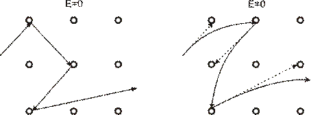 В движении электронов при наличии Е≠0 возникает отклонение от прямолинейности движения – параболическая траектория движения. При этом очевидно, что направленность всему движению придаёт именно это отклонение в сторону действия электрического поля. Для дальнейшего изучения нам потребуются следующие понятия: · длина свободного пробега λ; · средняя скорость теплового движения · средняя скорость направленного движения Допущение: энергия направленного движения носителя заряда гораздо меньше тепловой энергии: