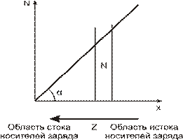 Диффузионная подвижность носителей заряда. Предположим, что в материале искусственно поддерживается градиент концентрации вида:
