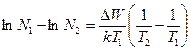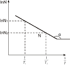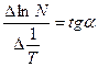 Зависимость изменения концентрации носителей заряда от температуры, построенная в логарифмических координатах, определяет величину энергии ионизации данного материала через угол наклона данной прямой. [Для полупроводников