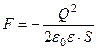 Это сила, с которой пластины конденсатора притягивают друг друга. Знак минус указывает на то, что является силой притяжения.