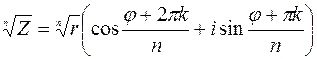 Пример 4. Записать в тригонометрической форме комплексное число 3. Пусть Пример 5. Вычислить. 4. Корнем n-ой степени из комплексного числа z называется такое комплексное число W (обозначается Все значения корня n-ой степени из