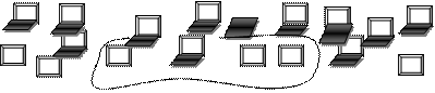 Виртуальные локальные сети VLAN. VLAN представляет собой выделенный логическими средствами сегмент локальной сети. Обычно VLAN используется для разделения ресурсов сети между группами пользователей, чья область деятельности требует изоляции. Удобство VLAN заключается в том, что оператор может управлять этими сегментами без реконфигурации аппаратной части сети. Для того, чтобы подключить тот или иной терминал к VLAN, не нужно переключать этот терминал и тянуть к нему кабель от нужного сегмента. Все делается при помощи реконфигурации программного обеспечения сети. Для виртуальной сегментации VLAN терминалы должны быть подключены к коммутаторам (рис. 6.9). Коммутаторы обеспечивают объединение терминалов в виртуальные сети. Два терминала могут быть физически удалены на тысячи километров, но чувствовать себя как если бы они были в одной локальной сети. 7 1 6 6 2 2 2 n m 4