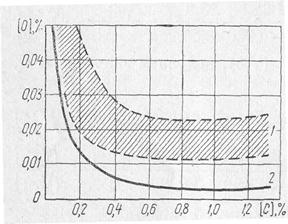 Для того чтобы протекал процеcс окисления углерода, фактическая концентрация кислорода в металле должна быть выше равновесной. На рис. 1 показана зависимость между содержанием [С] и [О] в металле для равновесных 2 и действительных условий сталеплавильных процессов. Концентрация кислорода, растворенного в металле, в процессе плавки непрерывно изменяется. На основе результатов проведенных исследований было показано, что концентрация кислорода в сталеплавильной ванне определяется содержанием углерода и практически не зависит от основности и окисленности шлака, содержания марганца в металле, скорости окисления углерода. Дальнейшие исследования показали, что при низких концентрациях углерода на окисленность ванны помимо содержания углерода оказывают влияние и другие параметры плавки. С понижением концентрации углерода до 0,05—0,10% на содержание кислорода в металле начинают оказывать влияние окисленность шлака (FеО) и концентрация марганца в металле.