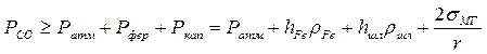 Реакция окисления углерода получает развитие тогда, когда общее давление в возникающих пузырьках окиси углерода (РСО) становится выше суммы атмосферного (Ратм), ферростатического (Рфер) и капиллярного (РКап) давлений: