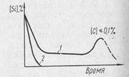 ходу процесса: 1— кислый процесс; 2 — основной процесс.