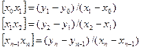Методом наим-ых квадратов(МНК). О качестве полученной апроксимации можно судить по величене уклонений Vi=| φ(хi)-f(xi)|, i=0…n. Если мы составили апроксимирующий полином, вычислили отклонения для всех узлов и эти уклонения нас не устраивают, то нам необходимо увеличить степень полинома с k до k+1.Это приводит к повтору всех проделанных вычислений. Поэтому желательно найти способ составления всех апроксимир-их полиномов от кот. Легко перейти от k к k+1 без сложных вычислений. Пусть дана n+1 ф-ця f(x) – задана таблично X: X0; X1… Xn Y: Y0; Y… Yn