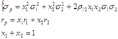 Пример. Для портфеля из двух ценных бумаг X1(x1, r1, σ1) и X2(x2, r2, σ2) соотношение между доходностью и риском имеет следующий вид