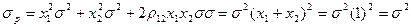Т.е. при изменении доли первого актива x1 от 0 до 0,5 значение σp уменьшается от σ до 0, а при изменении величины x1 от 0,5 до 1 приводит к возрастанию параметра σp от 0 до σ. Следовательно, волатильность в зависимости от структуры портфеля находится в пределах от 0 до σ. 3) Отсутствие корреляции между активами, составляющими портфель, т.е. ρ12=-0. В этом случае