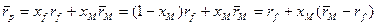 Рассмотрим портфель p = (xf, xM), где xf – безрисковые вложения (положительные в случае приобретения облигаций и отрицательные при заеме средств) с фиксированной ставкой rf, xM – вложения в портфель, соответствующий точке М. Тогда