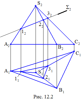 Пример 2. Построить пересечение многогранника плоскостью (рис. 12.2).