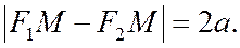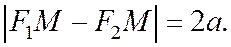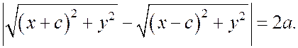 Линии второго порядка, заданные каноническими уравнениями Лекция 3 Определение. Гиперболой называется геометрическое место точек, для каждой из которых абсолютная величина разности расстояний до двух фиксированных точек плоскости, называемых фокусами, есть данное положительное число 2 а, меньшее, чем расстояние 2 с между фокусами. Пусть