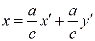 Перепишем уравнения асимптот гиперболы в виде . Введём новую систему координат, принимая за начало координат по-прежнему центр гиперболы, а за масштабные векторы осей и - единичные направляющие векторы асимптот: , . Тогда формулы преобразования координат будут иметь вид: , .