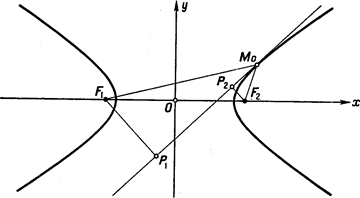 Доказательство. Опустим из фокусов Результаты подстановок координат фокусов Указанное геометрическое свойство позволяет построить касательную к гиперболе в произвольной точке Доказанной теореме можно придать оптическое истолкование, аналогичное как для эллипса. Луч света, пущенный из фокуса