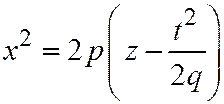 Эти уравнения выражают параболу с вершиной Аналогичная картина получается и для сечений эллиптического параболоида (1) плоскостями, параллельными плоскости Таким образом, эллиптический параболоид может быть образован параллельным переносом параболы Эллиптический параболоид является образом параболоида вращения
