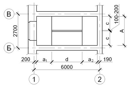 Рассчитать лестничную клетку для высоты этажа 2800 мм при ширине марша 1100 мм, зазор между маршами 100-200 мм. Расстояние в осях в продольном направлении 6000 мм, расстояние в осях в поперечном направлении 2700 мм. Ширина площадок а1 и а2 по каталогу сборных железобетонных изделий для высоты этажа 2,8 м 1300; 1600; 1900 мм.