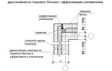 Монолитные наружные стены с утепляющими и отделочными наружными навесными панелями-скорлупами