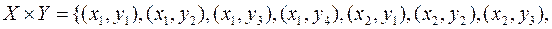Рассмотрим множества и : , . Тогда декартово произведение составляет множество: