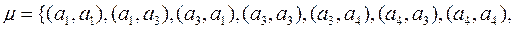Рассмотрим множество из предыдущего примера , где ; , , , и бинарное отношение , , означающие соответственно «иметь одинаковое число единиц». Тогда представляет собой следующее множество упорядоченных пар: .