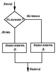 Подобная структура называется также «ЕСЛИ – ТО – ИНАЧЕ», или «развилка». Каждый из путей (ТО или ИНАЧЕ) ведет к общей точке слияния, так что выполнение программы продолжается независимо от того, какой путь был выбран.