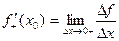 Определение. Производной функции f(x) в точке х = х0 называется предел отношения приращения функции в этой точке к приращению аргумента, если он существует.
