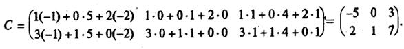 3. Умножение матриц. Произведением матрицы А размера m x n на матрицу В размера n x p называется такая матрица С, каждый элемент которой сij равен сумме произведений элементов i-й строки матрицы А на соответствующие элементы j-го столбца матрицы В, т.е. Например, если