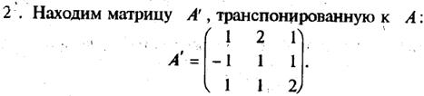 Докажем необходимость. Пусть матрица А имеет обратную матрицу А-1, т.е. А-1 * А = Е. Тогда |А-1 * А| = |А-1| * |А| = |Е| = 1. Следовательно, Докажем достаточность. Чтобы его доказать, необходимо просто описать способ вычисления обратной матрицы, который мы всегда сможем применить для невырожденной матрицы. Итак, пусть |А| ¹ 0. Транспонируем матрицу А. Для каждого элемента АТ найдем алгебраическое дополнение и составим из них матрицу Найдем произведение присоединенной матрицы и исходной