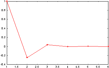 n=1;while abs(y(n))>1e-4 n=n+1;enddisp('Число элементов последовательности равно') k=nfor x=1:k Y(x)=y(x);enddisp('Значения элементов последовательности') Y plot(1:k,Y, 'r-*') %Линия -сплошная(-)красная ®, маркеры(*)