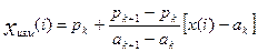 Для точек вне интервала а1…аN используют эту же формулу, но здесь имеет место экстраполяция: тогда k=1 при x(i)<а1; и k=N-1 при x(i)>аN.