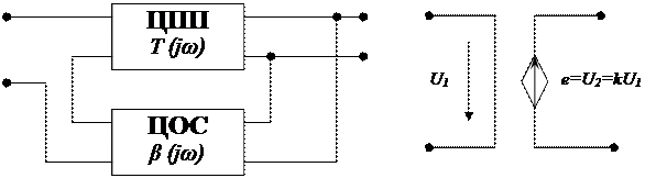 Понятие о цепях с обратными связями Цепи с обратными связями. Устойчивость ЭЦ. Автоколебательные цепи. В практике имеются детали, которые по-разному передают (пропускают) электрический ток при различных напряжениях. Такие детали и цепи с ними называют необратимыми. Под цепью с обратной связью понимают электрическую цепь, где можно выделить участки цепи, где происходит прямая передача электрического сигнала, и другие участки, где происходит обратная по направлению передача сигнала. Различают внутреннюю обратную связь и внешнюю обратную связь. Внешняя связь наблюдается тогда, когда можно выделить явно участки цепи, где происходит обратная передача сигнала. Внутренняя связь наблюдается тогда, когда такие участки выделить нельзя, т.е. обратная связь внутри какого-то компонента, внутри детали. Обратные связи различаются по напряжению и по току. Различают четыре типа обратных связей: 1) подается напряжение на вход цепи, с выхода берется часть напряжения и снова подается на вход цепи; 2) подается ток на вход цепи, с выхода берется часть тока и снова подается на вход цепи; 3) подается напряжение на вход цепи, с выхода берется часть тока и подается на вход цепи; 4) подается ток на вход цепи, с выхода берется часть напряжения и подается на вход цепи. Теоретически это можно представить, как применение управляемых или зависимых источников (ИНУН, ИНУТ, ИТУН, ИТУТ). Достаточно, чтобы такой управляемый источник находился либо в цепи прямой передачи сигнала, либо в цепи обратной передачи сигнала, можно и там, и там.