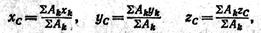 где xk, yk, zк — центры тяжести отдельных участков фигуры площадью А.