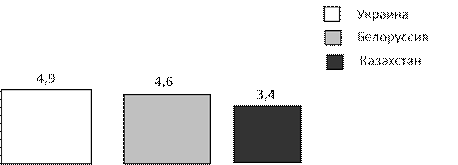 Площадь квадрата будет показывать удельный вес экспорта в данную страну. Так как площадь квадрата равна квадрату его стороны, то для определения стороны квадрата нужно извлечь квадратный корень из каждой величины: Для Украины Белоруссии Казахстана