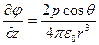 φА = qlcosθ / 4πε0r2 = pcosθ / 4πε0r2